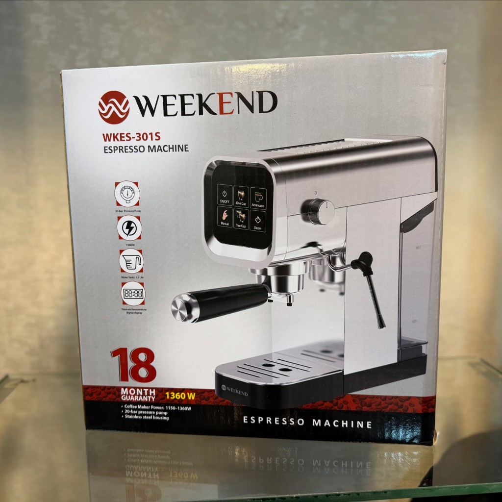اسپرسوساز ویکند مدل WKES-301 یک دستگاه قهوهساز خانگی با کیفیت و امکانات کامل است این مدل دارای بدنه استیل مقاوم و مخزن آب ۰.۹ لیتری است که برای مصارف روزانه و خانگی مناسب میباشد. صفحه نمایش دیجیتال رنگی کار با دستگاه را آسانتر کرده و تنظیمات را بهوضوح نمایش میدهد. همچنین با وجود نازل بخار و قابلیت فومگیری شیر، میتوانید نوشیدنیهایی مانند کاپوچینو، لاته و ماکیاتو را به راحتی آماده کنید. وجود سیستم ضدچکه، دکمههای لمسی با نور LED و قطعکن خودکار، کاربری دستگاه را راحت و ایمن کرده است.
