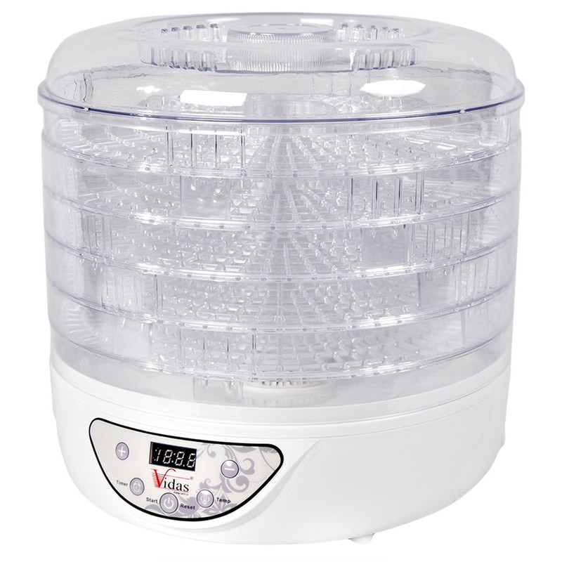 | سایر ویژگیها | میوه خشک کن دیجیتالیدمای قابل تنظیم از 35 تا 70 درجه سانتی گراددارای نمایشگر LEDزمان قابل تنظیم تا 19/5 ساعتدارای 5 طبقه قابل تنظیم ارتفاعارتفاع هر طبقه 31 سانتی متر |